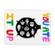 This minimalist, moody design features a sly black cat hiding in plain sight — and a whole plateful of suspiciously still fish. With bold, colorful lettering and sketch-style line work, this piece is perfect for fans of mysterious humor, animal antics, or snack-time gone slightly sinister.