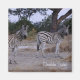 Impressões e presentes da Nature do Double Take Zebras apresentam uma bela fotografia de duas zebras, ambas olhando para o espectador tirado durante um lanche por Kurt Keller com uma câmera de 35 mm enquanto num safari africano em Botswana, África do Sul e Zimbábue. Cada zebra é única veste seu próprio padrão de listras apesar da dupla tomada. Quem ama animais africanos, a vida selvagem, e qualquer amante de zebra apreciará essa bela foto de duas zebras em pé na savana.
