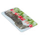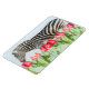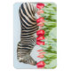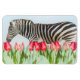 Uma pintura digital de uma zebra caminhando por algumas tulipas rosa e vermelha em um dia ensolarado. Imagem Copyright ©2019 Kimberly J Tilley.