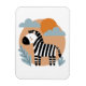 A ilustração artística cerâmica de uma zebra, num estilo moderno influenciado escandinavo, com cores planas arrojadas e formas simples e arredondadas, dá uma influência divertida do século médio, um charme desenhado à mão, com detalhes mínimos. Um fundo pastel macio, faz um design amigável e alegre.