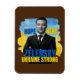 Honrando o receoso e carismático Presidente da Ucrânia, Volodymyr Zelenskyy - este design de ímã flexível apresenta um recorte de fotos a preto e branco do líder do país com palavras "esperança" "Herói" azuis e amarelas "Hero", "Forte Ucrânia", sobre fundo de pincelada azul e amarelo