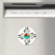 Deus nativo americano Zia Sun com penas para completar as quatro direções, do símbolo da zia.
