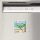 Zihuatanejo México poster de viagens de férias com palmeiras, barco de pesca em uma praia de areia quente.
