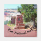 Paisagem nacional do parque de classe que entra no Parque Nacional Zion, Utah, EUA. Pinças multicoloridas em vermelho e amarelo com árvore evergreen bonito ao lado do signo clássico de entrada.