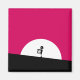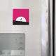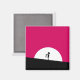 Um imã com um legal zumbi. Esquema de cor rosa e preto a negrito vibrante. Uma silhueta zumbi com braços estendidos na caça por cérebros. Uma grande lua branca ilumina por trás.