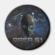 Área 51 design para Teóricos da Conspiração, três OVNIs e uma cabeça alienígena com olhos brilhantes.