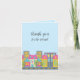 Cartões de "obrigado" para o marketing imobiliário. A design apresenta um bairro urbano fofo sobre um fundo azul claro. Perfeito para imóveis residenciais, mutuantes hipotecários, agências de títulos, serviços de inspeção no domicílio, etc. Edite o verso para incluir seu nome e informações de contato.