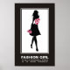 Garota moça moda com impressão-leopardo rosa e motivadora impressão de poster elegante, apresentando uma moça moderna de moda em preto com a tampa sem fio impressa no topo e na bolsa em fúcsia rosa-quente em fundo branco. Há uma fronteira negra em volta dela e a citação: Garota da moda: Ser uma mulher moda é conhecer-se a si mesma. Alguns elementos são cortesia de vectorportal.com.