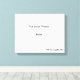 Digitalize a obra de arte do seu filho, a sua foto favorita, ou uma foto inspiradora com uma foto e monte-a na parede como uma Giclee criada personalizada criada por VOCÊ!. Você é um artista. Canvas 14 X 11 personalizada Faça sua própria canvas 14 x 11! A ferramenta design permite que você adicione seu próprio trabalho de arte, design ou imagens para fazer uma canvas 14 x 11 de um tipo. Você pode adicionar texto usando fontes incríveis e visualizar uma visualização do seu design! Nossa canvas 14 x 11 fácil de personalizar não tem ordem mínima e é feita quando você compra. A canvas de brilho de Zazzle é feita a partir de uma mistura de algodão-poli sem aditivos e apresenta um revestimento especial receptivo a tinta que protege a superfície impressa de fissuras quando esticada. Feita com tecelagem apertada, ideal para qualquer fotografia ou arte fina, a nossa canvas de brilho instantâneo e seco produz impressões que são resistentes ao apagão por 75 anos ou mais.