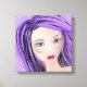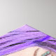 Apresenta um desenho de arte pastel abstrato de uma garota com cabelo roxo.