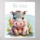Um bebê bonito Hippo para o berçário de bebês ou o quarto de uma criança. A impressão de arte diz "Seja gentil" mas pode ser mudada para o nome de uma criança ou qualquer palavra que você queira. presente de excelente para a mãe ser seu presente de chá de fraldas.