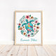 Traga as vibes pacíficas do oceano para o seu espaço com esta linda impressão de arte de tartaruga marinha boho. Rodeada por flores tropicais delicadas e ilustrada em tons de turquesa calmantes, este design evoca relaxamento e harmonia com a natureza. Personalize o texto com seu nome, citação ou localização para torná-lo verdadeiramente seu. Perfeito para decoração costeira, casas de praia, berçários ou como um presente atencioso para amantes do oceano.