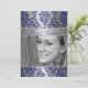 Este Convite de Aniversário do Elegante Doce 16, personalizável, apresenta um padrão azul de impressão floral num fundo prateado. Personalize-o adicionando sua foto e detalhes na fonte de sua escolha! Nota: Os diamantes são uma imagem impressa.