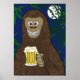 Bigfoot bebendo cerveja na floresta