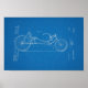 1902 A bicicleta recumbente Vintage, ilustração técnica da bicicleta nos EUA. O número de patente para este diagrama é 690.733 Mais impressões de patente na nossa seção "Impressões de patente".