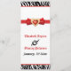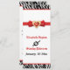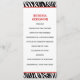 A zebra branca preta com arco vermelho e casamento de joias personalizou o programa de geremonia que apresenta uma borda de impressão zebra branca e preta e uma fita vermelha através dela com um arco e uma joia em forma de coração também em vermelho com contorno e fita de ouro que adiciona uma pequena haste. Observe que as joias de diamante arco e cardíaco são uma ilustração "impressa" e não um cristal de verdade, assim como a fita. Esta design de tendência combina seus elementos modernos e modernos com a antiga letra inglesa que lhe dá um toque de vintage e retrô-sentimento. Um design na moda elegante, perfeito não só para um casamento no inverno.