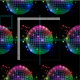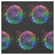 Este tecido tem fileiras das bolas coloridas do disco impressas no tecido preto.