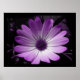 Este maravilhoso impressão floral apresenta uma fotografia bem detalhada de uma flor margarida africana. A foto foi alterada digitalmente, resultando em uma bonito flor púrpura com diferentes tons de púrpura nas pétalas e um centro roxo escuro. A impressão tem uma borda preta.