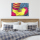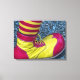 Uma bela fotografia de um calçado de palhaço amarelo e vermelho e meia correspondente impressa em uma canvas.