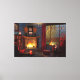 Um canto de leitura confortável num dia chuvoso de outono. Ao redor da lareira com um fogo em branco estão as poltronas vermelhas, com pilhas de livros e chás e um bule para completar o conforto. Fora de um salgueiro amarelo e um maple vermelho e uma seita de faia são obscurecidos pela chuva que sopra a janela onde um gato gengibre se senta olhando para fora.