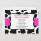 Comece sua celebração fora do direito com este convite adorável do aniversário. Manda o impressão preto e branco da vaca em torno da parte externa deste convidar. Há uma banda grossa do rosa quente através do centro. O centro do convite é um grande Tag branco esboçado no preto. A informação do partido está no centro branco, verifica para fora os muitos outros produtos e design nesta linha de impressão animal. cuties do ©cupcake
