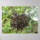 Esta bela poster apresenta uma fotografia de um aglomerado de Morangos Amarrados. As bagas mudam de tinto para preto quando estão prontas para a colheita e são excelentes para se transformarem em vinho de Elderberry. A foto foi tirada numa pista tranquila no suburbano de Londres.