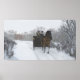 Esta cena histórica de inverno mostra uma casal tirando um passeio de trenó de inverno através de uma paisagem gelada de inverno. Renderização digital original do artista Jayne Wilson.