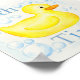 Um pato de borracha amarelo giro cercado por bolhas em um poster. Diz Bath Time na poster. Perfeito para um banheiro patinho de borracha! Obtenha um tamanho maior para um chá de fraldas de borracha.
