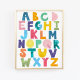 Este impressão de alfabeto colorido é uma reprodução de uma colagem de papel pintada e cortada. Brincadeira o suficiente para qualquer quarto de criança ou creche com tons de rosa, azul, laranja, amarelo, verde e roxo! Este trabalho de arte ABC também seria bonito exibido em uma sala de aula.