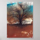 Aproveite esta arte de árvore com tinta com céu azul e chão ferrugem. Arte de Jennifer Steffen. A arte é apresentada enquadrada. Observe que o quadro é adicional.
