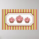 Listras coloridas como balas decoram esta impressão de arte de cupcake rosa. Use esta impressão de arte como decoração em uma cafeteria, padaria, cozinha, berçário, quarto, etc.... O design é de arte original.