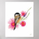 Uma pintura aquosa doce e fofinha de um pássaro-bico com flores rosa e púrpura. Trabalho de arte por Jenn Steffen.