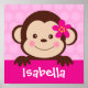Impressão de Arte Personalizada com Nome de Macaco Bebê Meninas