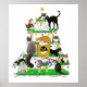 Design de arte original de gatos se divertindo em uma árvore de gatos decorada para o Natal pela designer Carolyn McFann do Two Purring Cats Studio sobre posters de férias de arte de qualidade para amantes de gatos.