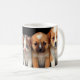 Impressão de caneca, três gatinhos e dois cachorros, bonitinhos, bebês. Sentar-se escondido um ao outro.