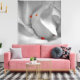 Um close-up de uma rosa laranja e amarela flamejante, dessaturada para um preto e branco mais silencioso. Apenas as gotículas de água salpicadas nas pétalas de cinzas moles dão uma dica das cores ensolaradas originais.