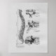 A ilustração quiroprática venenosa do início da década de 1900 traz um olhar histórico vintage para o escritório. Vista lateral da coluna vertebral e das vértebras cervicais, torácicas e lombares.