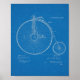 1881 Vintage high Wheer ou Penny Farthing bicicleta nos EUA ilustração técnica de design. Alavanca movida. Plano de fundo do papel de impressão em plano. Mais impressões de patentes na nossa seção "Impressões de patentes dos EUA". Posters de propaganda em bicicleta sob nossa seção "Anúncios de publicidade em período de tempo"
