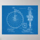 1887 Vintage high Wheer ou Penny Farthing bicicleta nos EUA ilustração técnica de design. Unidade de pedal com fundo de papel Blueprint de dupla engrenagem. Mais impressões de patentes na nossa seção "Impressões de patentes dos EUA". Posters de propaganda em bicicleta sob nossa seção "Anúncios de publicidade em período de tempo"