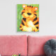 Arte divertida de gatos grandes projetada por Sarah Trett. Tigre macio, excelente na parede do quarto de um bebê ou de uma criança. Impressão de tela desse tigre bonito pintado exclusivamente e projetado por Sarah Trett.