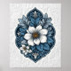 Indigo Blossom - Uma impressionante composição floral que mistura matizes ricos de índios com negras negras negras, todas enquadradas dentro de um ornamentado, inspirado na alma. As delicadas pétalas irradiam a partir do centro, acentuadas com estames de ouro, enquanto os intrincados elementos botânicos passavam graciosamente pela design. Colocada contra um fundo branco emboscado, esta peça exude elegância do eterno e beleza serena.