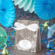 Obrigado russo, sua caixa de favoritos de casamento, com uma vibração vintage, estilo country, impressão de flores românticas brancas em cinzas de madeira termal.