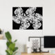 Esta impressão de assombro foi criada de um fractal. Ele se parece com um aglomerado de árvores negras com troncos negros e galhos tortos contra um céu noturno branco iluminado pela lua. Parece que você está deitado no chão olhando para o céu dentro de uma floresta densa e assustadora. Que sua imaginação corra. O design está disponível em vários tamanhos diferentes, sendo o maior mostrado aqui.