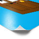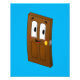 Uma porta marrom com olhos grandes, um sorriso no rosto e uma maçaneta dourada.