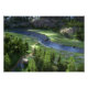 Um caminho de enrolamento leva sobre as montanhas até um vale do rio solitário. Ele atravessa o riacho rochoso sobre uma linha de pedras pisadas e termina em uma solitário enfiada debaixo das árvores ao pé das colinas. O campo da montanha está cheio de grama verde e manchas de flores azuis e rosa. Os picos de sombreamento ainda estão cobertos de neve nesta manhã de primavera.