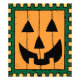 Bela abóbora Jack-O-Lanterna encarada com o selo do decor do Dia das Bruxas. O rosto da abóbora é laranja com o verniz verde. Design criado por Black Brook Photoographic com gráfico de Pixabay setembro de 2014.