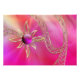 Um fluxo fractal brilhante de amarelo pálido e laranja se transformando em rosa quente, sobreposto com filigrana dourada motif estudada com joias e acentuado com uma suave e profunda pérola roxa cercada por raios solares ouros brilhantes.