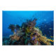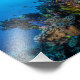 Impressão de fotografia mostrando as belas cores do Excelente Barrier Reef da Austrália junto com as abundantes escolas de peixes tropicais.