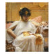 John William Waterhouse Cleopatra, impressão de fotografia. Pintura a óleo na canvas de 1888. O pintor inglês John Waterhouse partiu fortemente de figuras históricas na sua trabalho de arte, e Cleópatra é uma das pinturas históricas mais reconhecidas do artista. Cleópatra se senta em uma cadeira de impressão leopardo em uma túnica branca com um cinto de tecido de ouro. Ela veste uma coroa de ouro e uma pulseira e olha com a mão na cabeça de um leão de marfim. Um presente de excelente para fãs de Waterhouse J.W., Cleópatra, Egito, história antiga e pintura romântica inglesa.