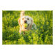 Impressão de foto de alta qualidade do Ouro Retriever em campos com bola na boca.